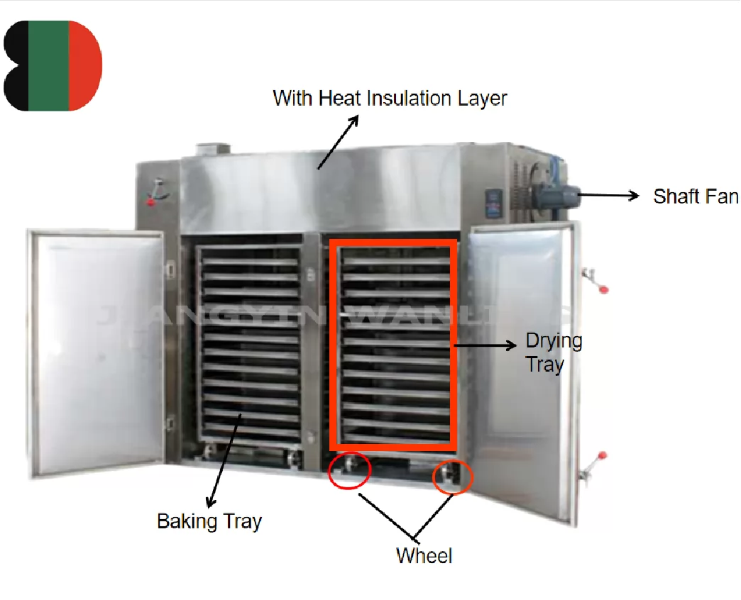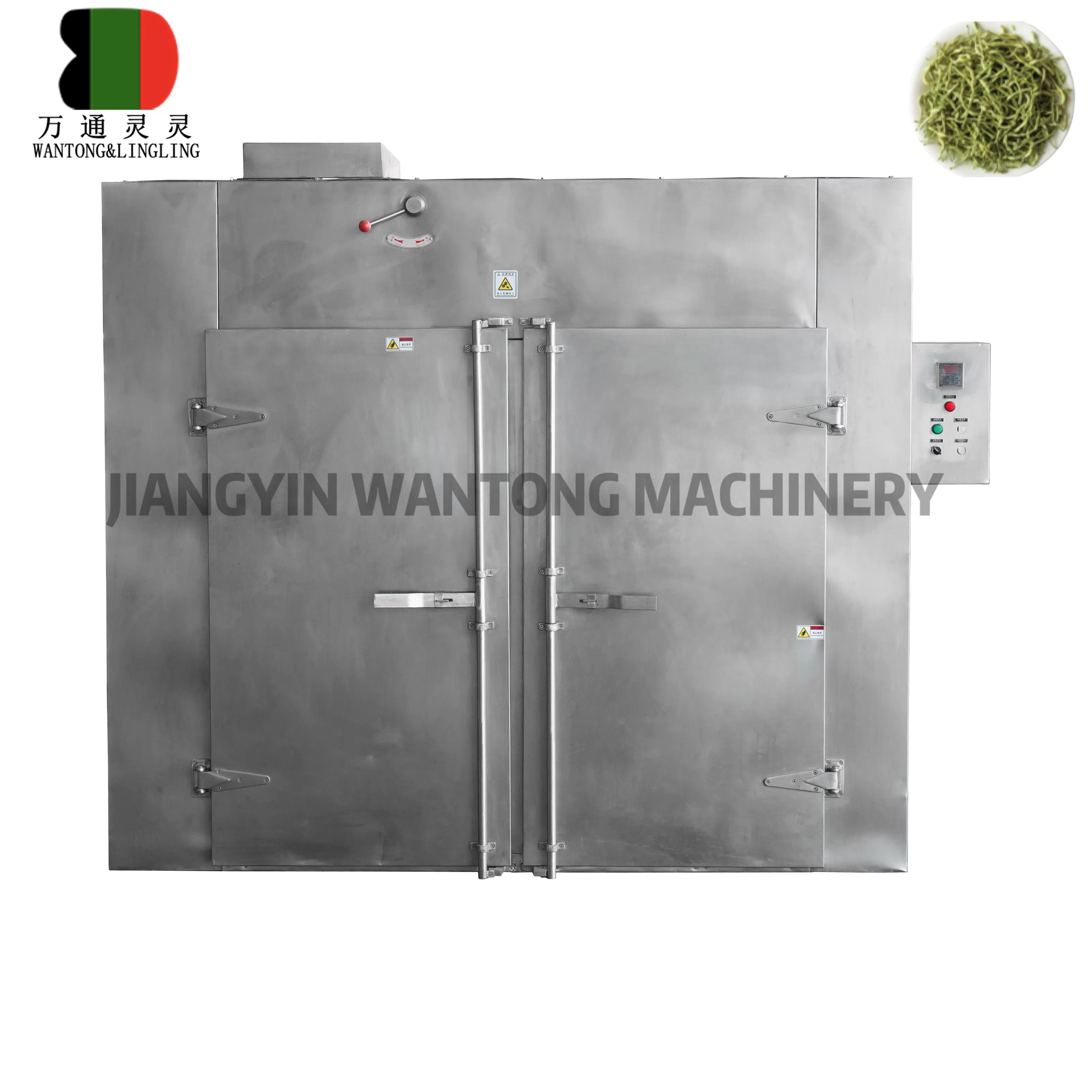 This tea leaf hot air dryer is initiated by our company and reaches the international level after several updates. This machine overcomes the disadvantages of long drying time, great heat loss. It uses the steam heater or electrical heating organ to create heat and change heat through convective wind to heat up the material.