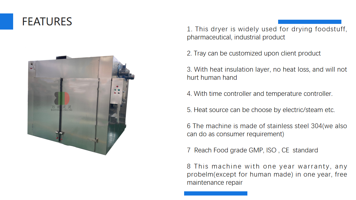 CT-C Hot Air Circulation Oven is initiated by our company and reaches the international level after several updates. This machine overcomes the disadvantages of long drying time, great heat loss. It uses the steam heater or electrical heating organ to create heat and change heat through convective wind to heat up the material.